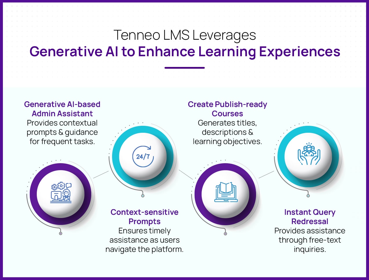 The Tenneo Assistant, powered by Generative AI, is crafted to improve learning outcomes by automating tasks and generating content instantly. This intelligent assistant offers context-sensitive prompts tailored to users' actions within the platform, reducing the need for separate help documentation. By providing timely guidance, it streamlines the onboarding process, enhances user efficiency, and simplifies navigation, resulting in effective and engaging dynamic AI learning experiences.
